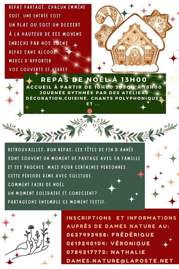 Repas partagé : chacun amène soit une entrée, un plat ou un dessert à partager à la hauteur de ses moyens enrichi par nos soins. Repas sans alcool. Merci d’apporter vos couverts et verres. Repas à 13h Accueil à partir de 10h jusqu’à 18h. Inscription souhaitée.